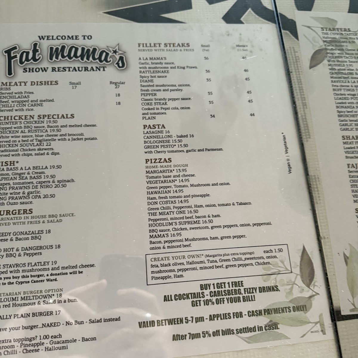 Fat Mama's is a vibrant dining destination located in Paphos, Cyprus, offering a delightful culinary experience. Renowned for its generous portions and exceptional value, this restaurant serves an array of mouthwatering dishes, including fall-off-the-bone ribs and hearty lasagna, complemented by refreshing cocktails. Guests rave about the friendly service and the warm welcome from the staff, contributing to a family-friendly atmosphere. The highlight of each visit is the captivating entertainment, making every meal memorable. With its commitment to quality and authenticity, Fat Mama's stands out as a must-visit spot for food lovers seeking great flavors and lively fun in Paphos.